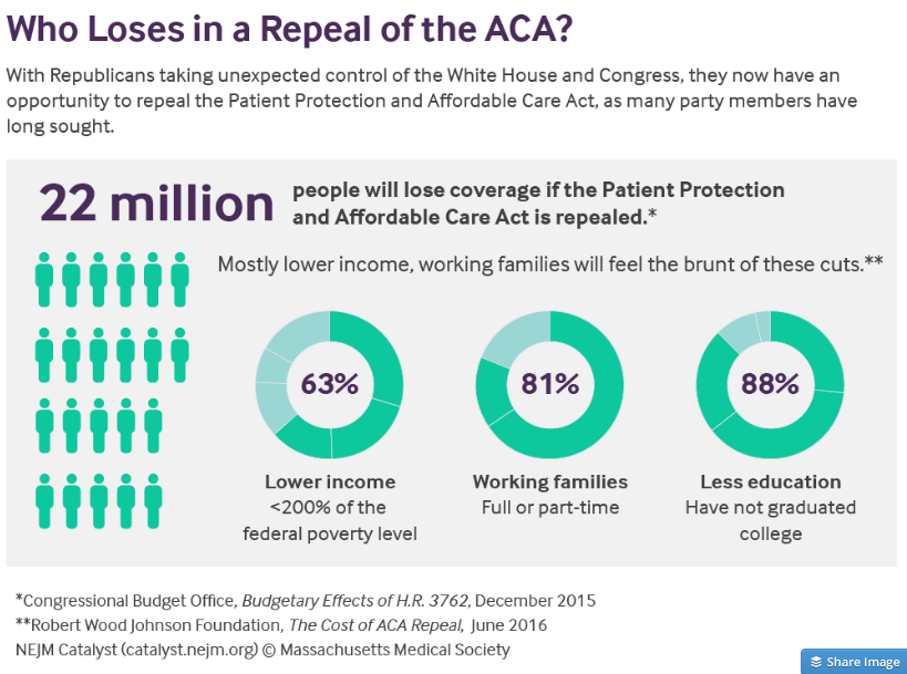 22 million Americans are projected to lose their healthcare insurance if the ACA is successfully repealed.